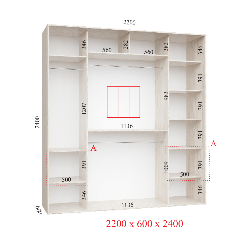 Шафа-купе 220х60х240 ЛЮКС 3 фасади