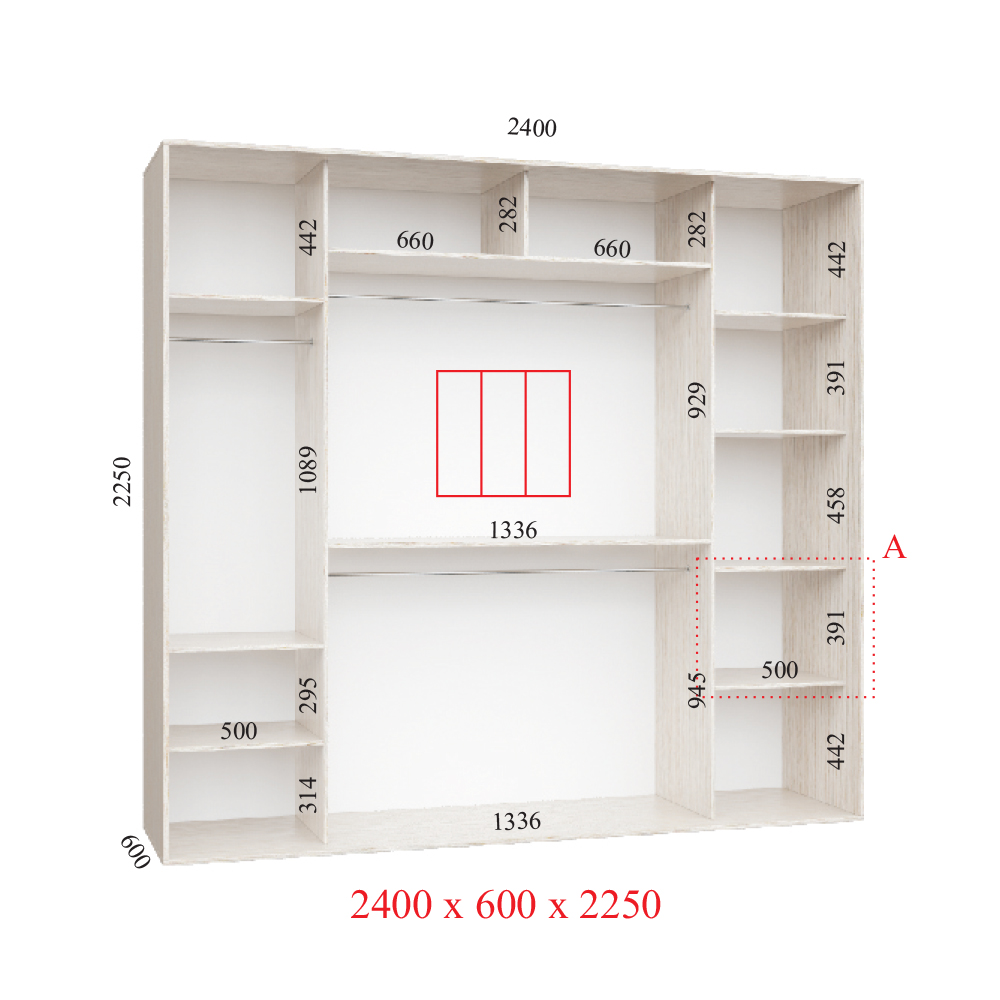 Шафа-купе 240х60х225 ЛЮКС 3 фасади