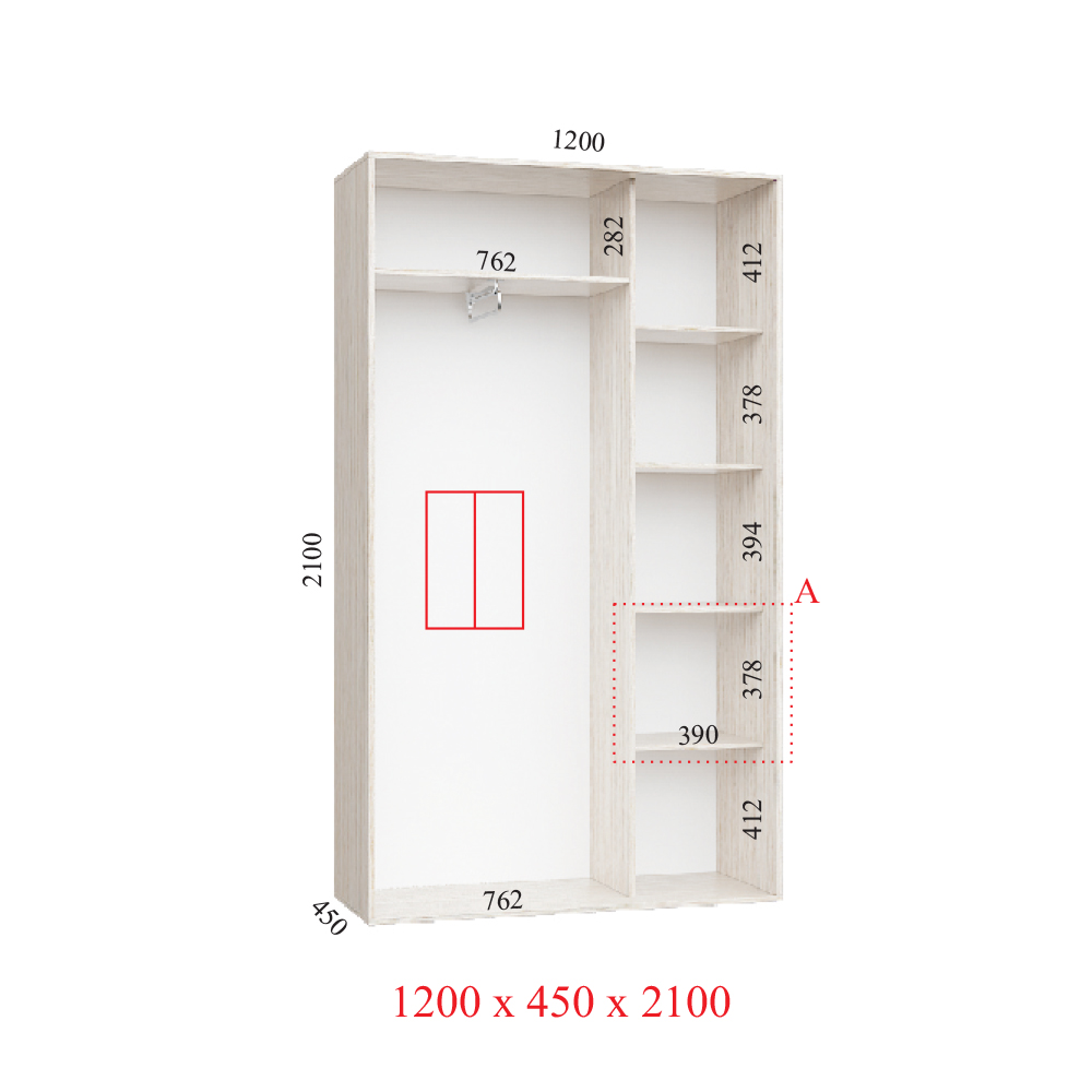 Шафа-купе 120х45х210 СТАНДАРТ - 2 фасади