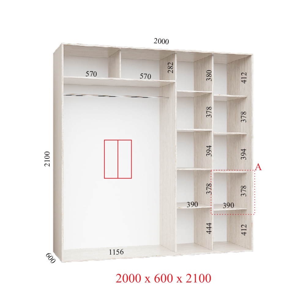 Шафа-купе 200х60х210 СТАНДАРТ - 2 фасади