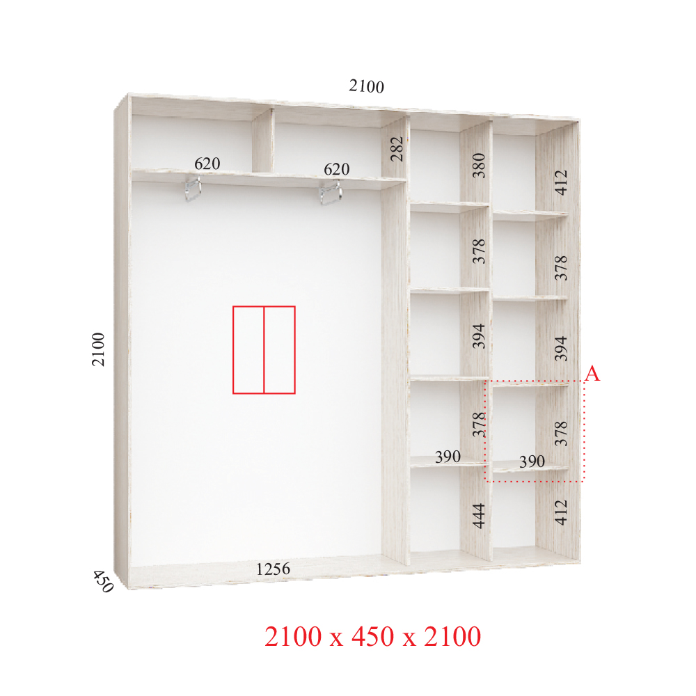 Шафа-купе 210х45х210 СТАНДАРТ - 2 фасади
